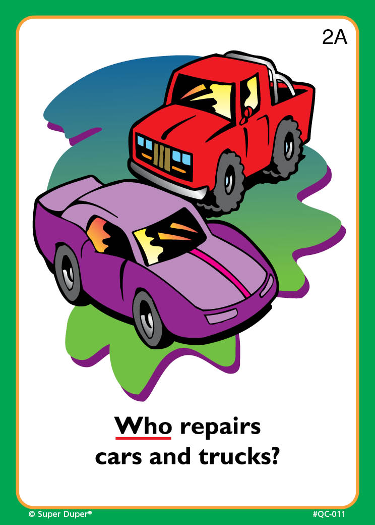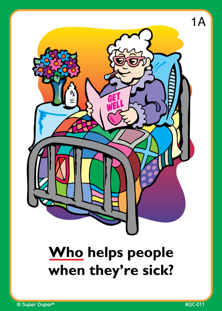 Description: 28 match-up pairs of "who" question-and-answer cards featuring child-friendly illustrations.