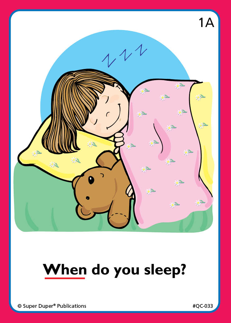 Description: 28 match-up pairs of "when" question-and-answer cards featuring child-friendly illustrations.