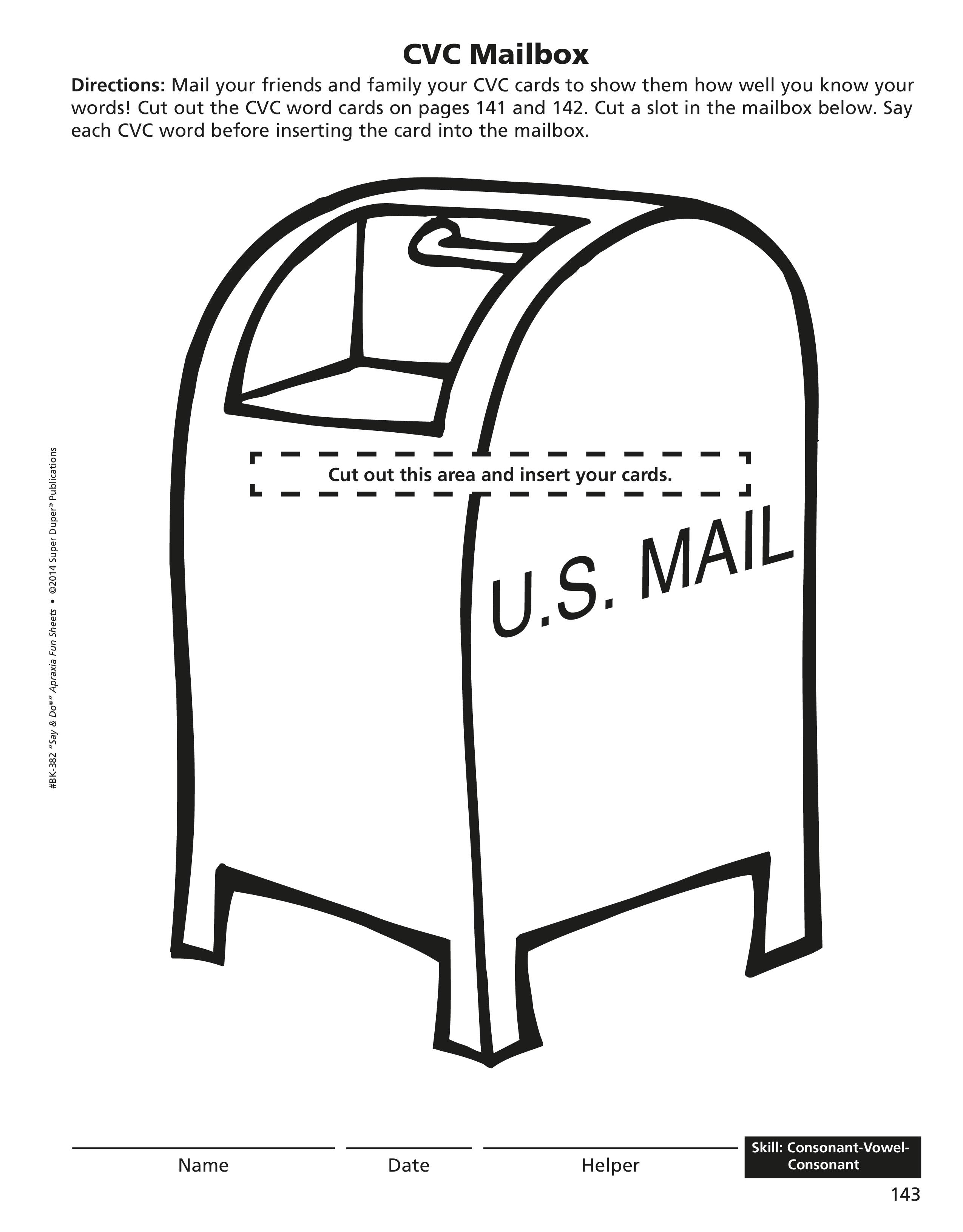 Description: A variety of activities for CVC words. Students focus on repetition as they learn to form consonant and vowel combinations. This resource includes the CVC Words section (p. 141-184) of the “Say & Do” Apraxia Fun Sheets.